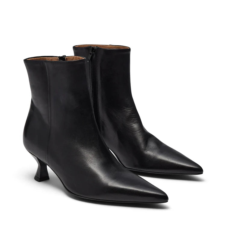 Formerna på höstens skor är alla olika. Både den spetsiga tån och den fyrkantiga när det gäller boots, och spetsig och rund tå bland ballerinorna. Bland bootsen så skall det vara en form som blir synlig, som matchar siluett och vidd på byxbenen så bootsen inte blir för snälla.