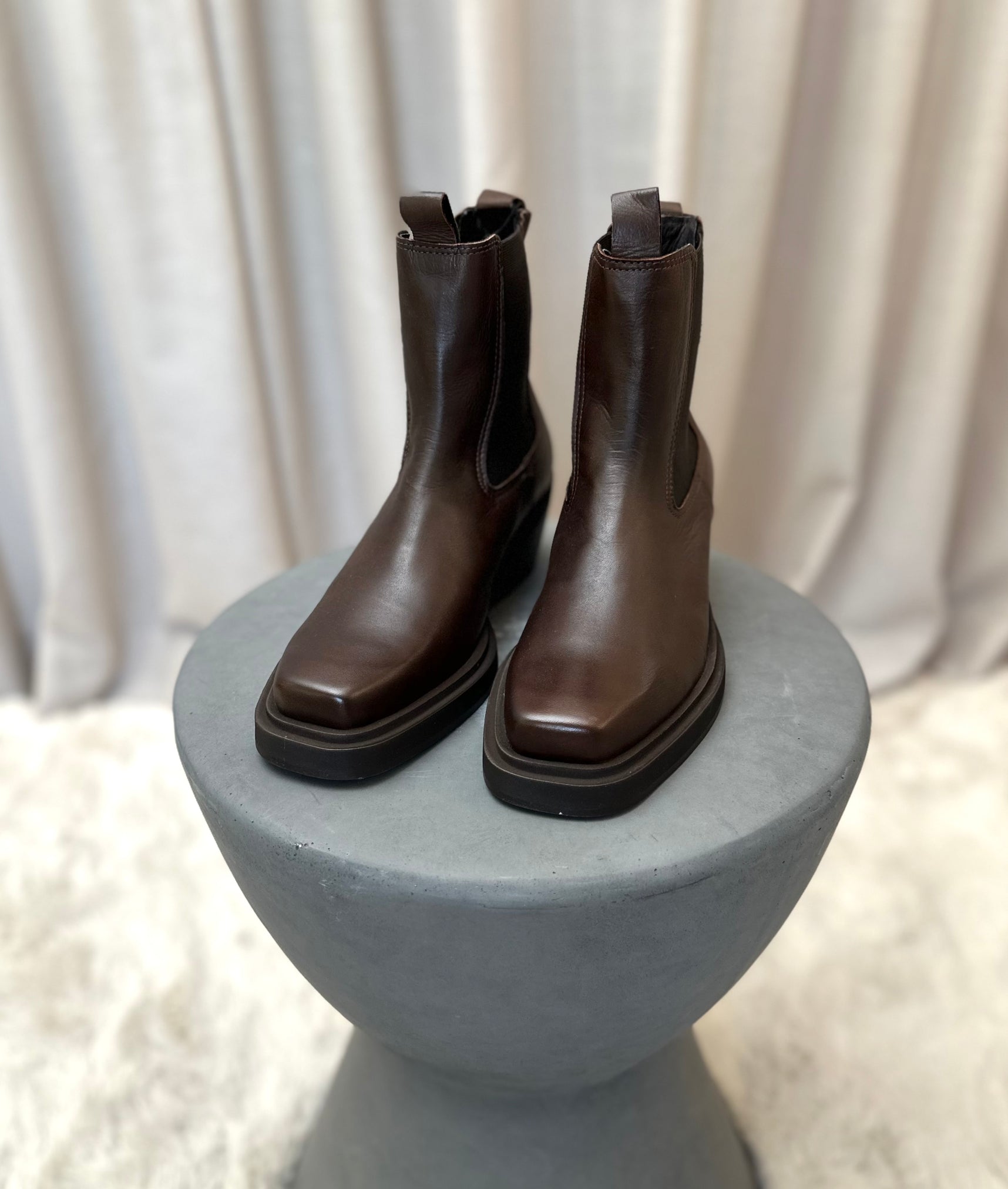 Här kommer även den nedhasade stövleln in, riktigt kaxiga där de ger illusionen av att vara vida och slappa. Vi har dom i två olika höjder. Vanliga klassiska skinnstöveln är självklart också med. Är fortsatt mycket kjolar och klänningar så det kommer behövas stövlar i skogarderoben.